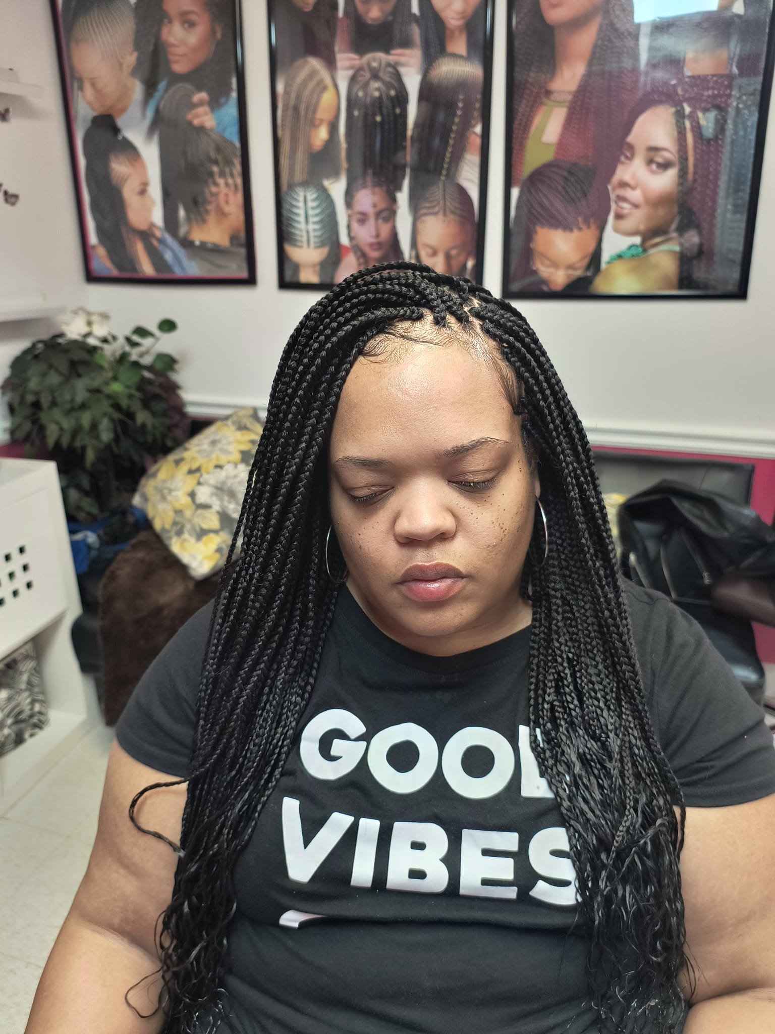 Lightweight and natural-looking, knotless braids create a sleek finish with less tension, offering comfort and style while protecting your natural hair.
